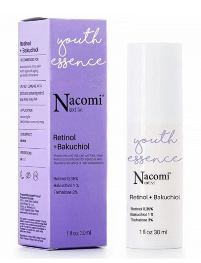 Αντιγηραντικός ορός προσώπου με ρετινόλη και Bakuchiol. Περιέχει βιταμίνη Α (σε μορφή ρετινόλης) σε συγκέντρωση 0,35%, η οποία έχει αντιγηραντικές ιδιότητες, συσφίγγει και ελαττώνει τις δυσχρωμίες, αυξάνει την ελαστικότητα του δέρματος και εξαλείφει τις ατέλειες και bakuchiol που τονώνει, λειαίνει και ενοποιεί τη δομή του δέρματος. Επιπλέον, η τρεαλόζη συγκρατεί το νερό στην επιδερμίδα και το σύμπλεγμα υαλουρονικού οξέος, χάρη στα διαφορετικά μεγέθη του μορίου HA, ενυδατώνει σε βάθος και λειαίνει το δέρμα.