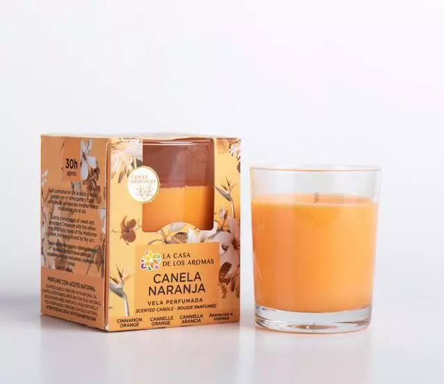 Αρωματικό κερί σε ποτήρι με έντονο άρωμα κανέλας πορτοκαλιού και σύνθεση με βάση Αιθέρια Έλαια.
