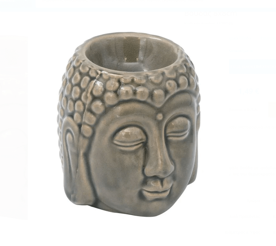 Κεραμικός αρωματιστής σε σχήμα κεφάλι Βούδα με ανάγλυφες λεπτομέρειες.