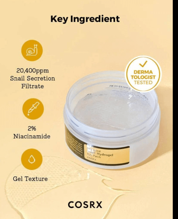 Τα επιθέματα COSRX Advanced Snail Hydrogel Eye Patches είναι επιθέματα υδρογέλης για την περιοχή των ματιών και όχι μόνο. Ενυδατώνουν αμέσως, «γεμίζουν» και φωτίζουν την ευαίσθητη περιοχή των ματιών. Το βάζο περιέχει 2 μεγέθη, μικρό και μεγάλο επίθεμα για να εφαρμόζει τέλεια και να καταπραΰνει και να ενυδατώνει το δέρμα.