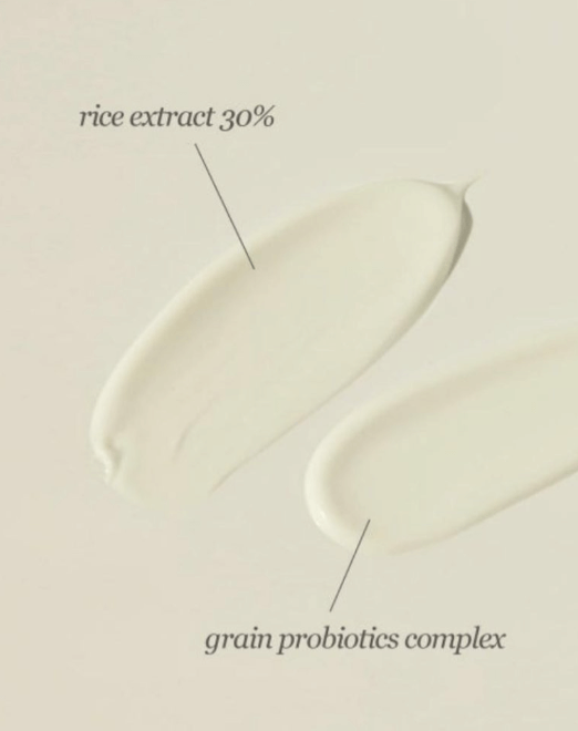 - Περιέχει εκχύλισμα ρυζιού 30% + σύμπλεγμα προβιοτικών κόκκων τα οποία θρέφουν, ενυδατώνουν και φωτίζουν το δέρμα. Είναι πλούσια σε βιταμίνες B, C, E, αμινοξέα και μέταλλα που βοηθούν στην ενυδάτωση του ξηρού δέρματος και καταπραΰνουν την επιδερμίδα. Bοηθούν το δέρμα να διατηρείται υγιές και προστατευμένο.